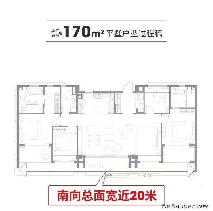 南向总面宽近20米,客厅和活动室加起来宽约9.25米,还做了双套房——主卧有独立卫生间和衣帽间,老人房也有独立卫生间,三代同堂住在一起也不挤,互不打扰.